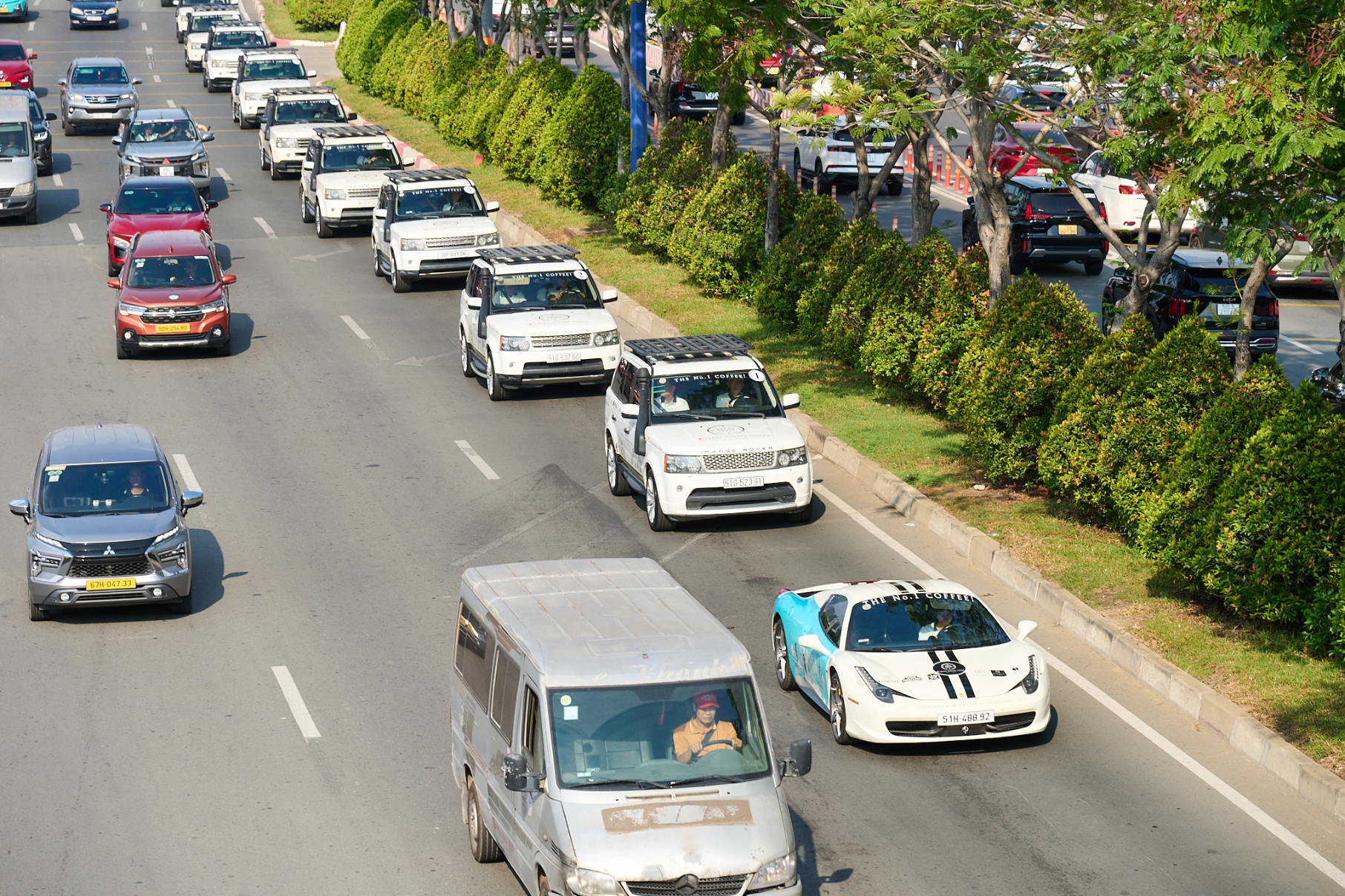 Theo thông tin từ Ban tổ chức, đội hình tham gia xuyên suốt chuyến đi bao gồm 20 chiếc xe đặc biệt: 16 chiếc SUV hạng sang Range Rover, 2 mẫu sedan siêu sang Rolls-Royce Phantom VII, cùng bộ đôi "siêu ngựa" nước Ý là Ferrari 458 Spider và Ferrari F8 Spider.