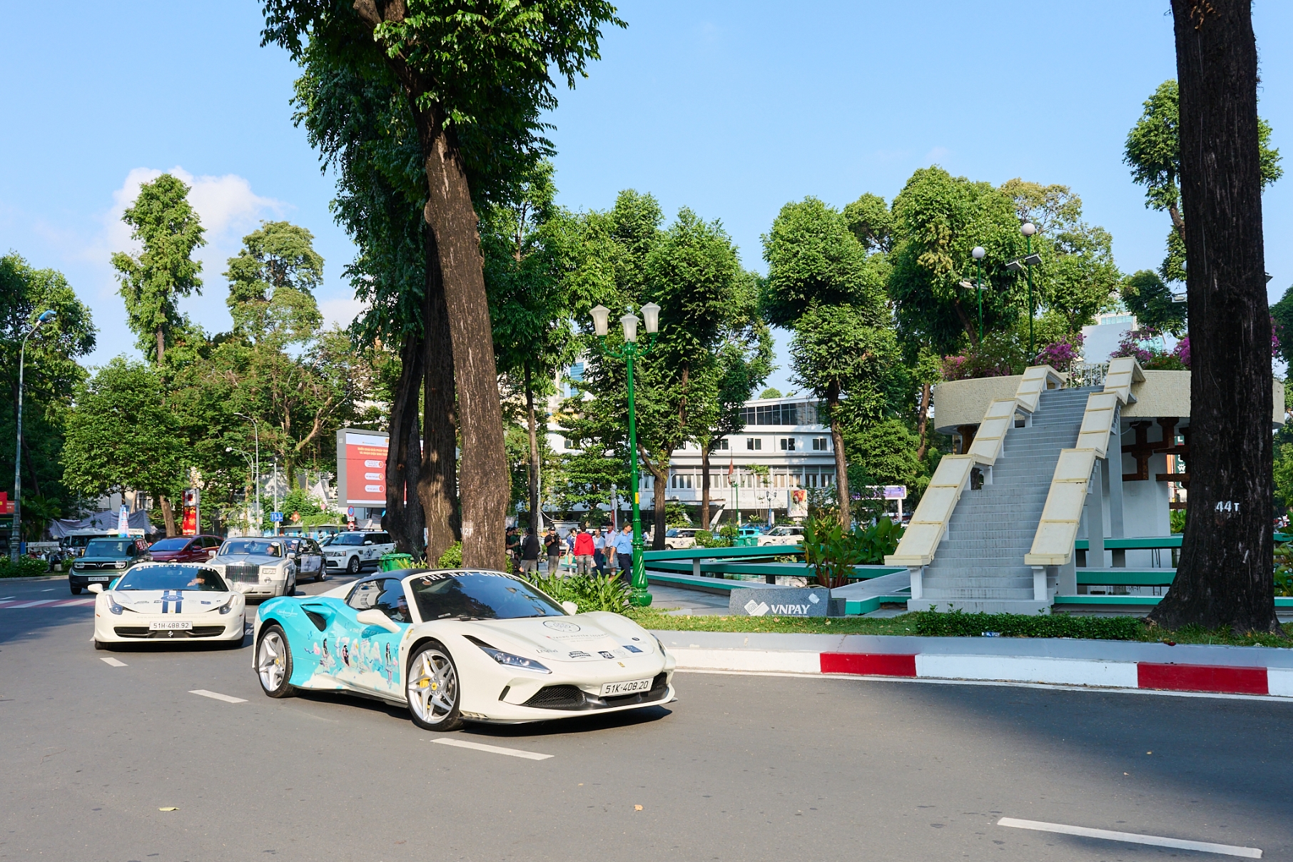 Đặc biệt năm nay, sự chú ý của giới mộ điệu đổ dồn vào hai chiếc Ferrari 458 Spider và F8 Spider. Cặp đôi siêu xe này không chỉ mang động cơ huyền thoại và thiết kế vượt thời gian, mà còn được khoác lên mình lớp decal (wrap) đặc biệt tôn vinh nữ nghệ sĩ trẻ Izara Thiên Nga. Sự kết hợp giữa siêu xe đỉnh cao và hình ảnh nghệ thuật hiện đại tạo nên một điểm nhấn thị giác khác biệt, mang đầy cảm xúc tốc độ trên những cung đường Hành trình đi qua.