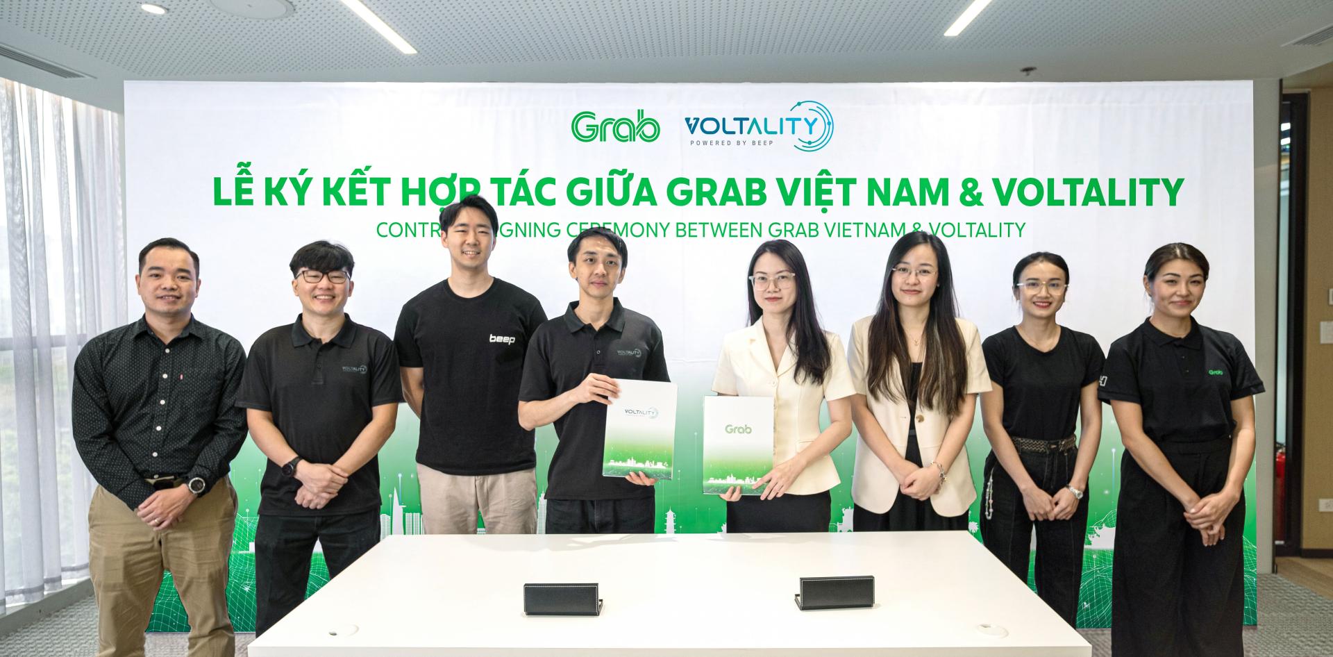 Đại diện Grab Việt Nam và đại diện Voltality ký kết hợp đồng hợp tác