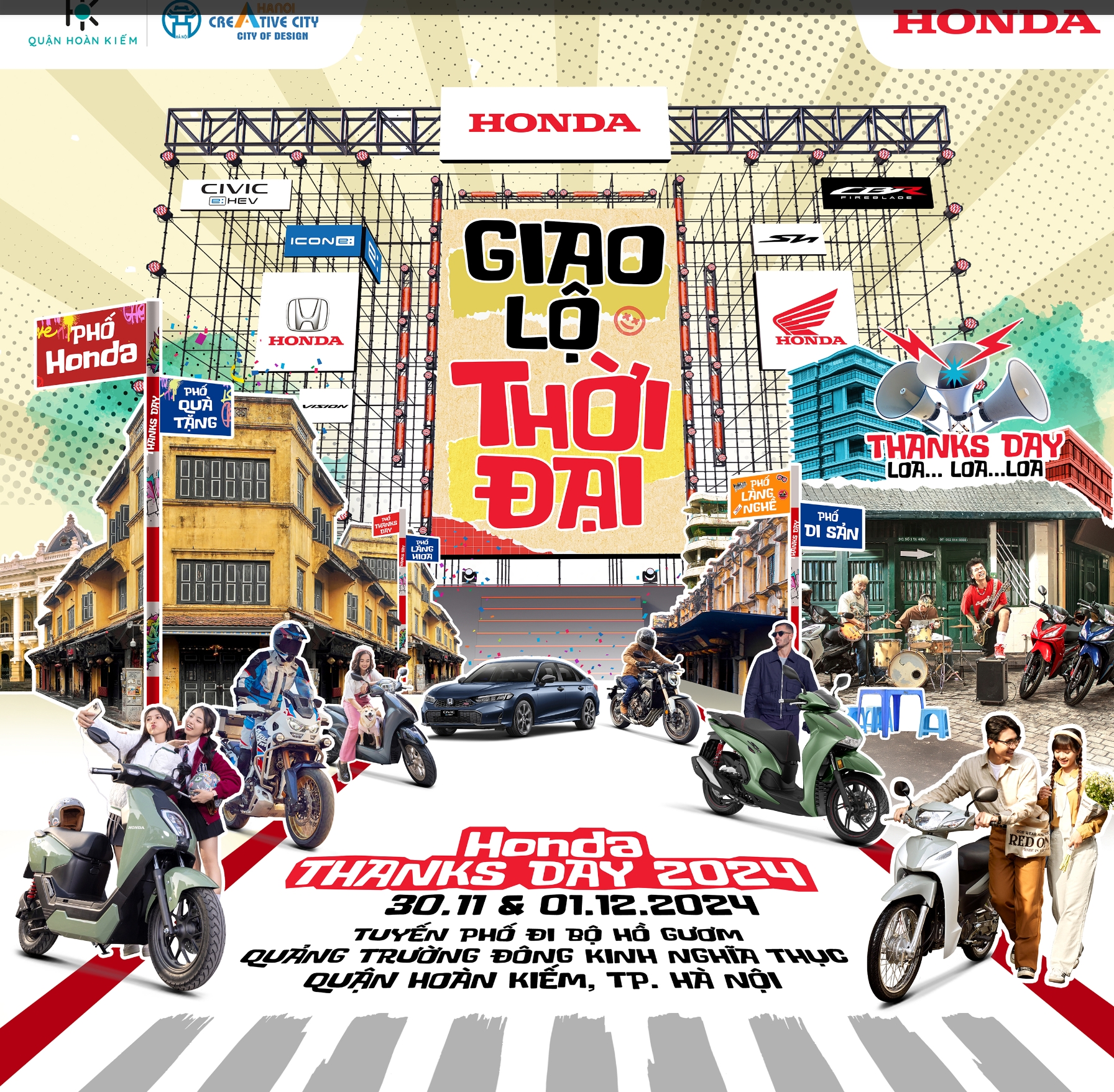HVN hy vọng quý khách hàng sẽ có những trải nghiệm tuyệt vời và đáng nhớ bên bạn bè và gia đình tại “Giao lộ thời đại” – Honda Thanks Day 2024.