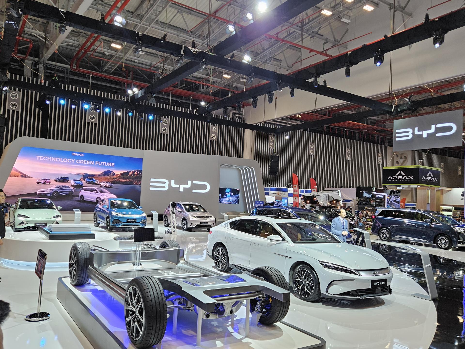 Gian hàng BYD đã tạo nên ấn tượng mạnh mẽ đậm chất công nghệ “Technology - Green - Future”cùng những sản phẩm vượt trội. Bên cạnh dải sản phẩm quen thuộc, BYD còn mang đến cái nhìn toàn diện về tầm nhìn dài hạn của thương hiệu.