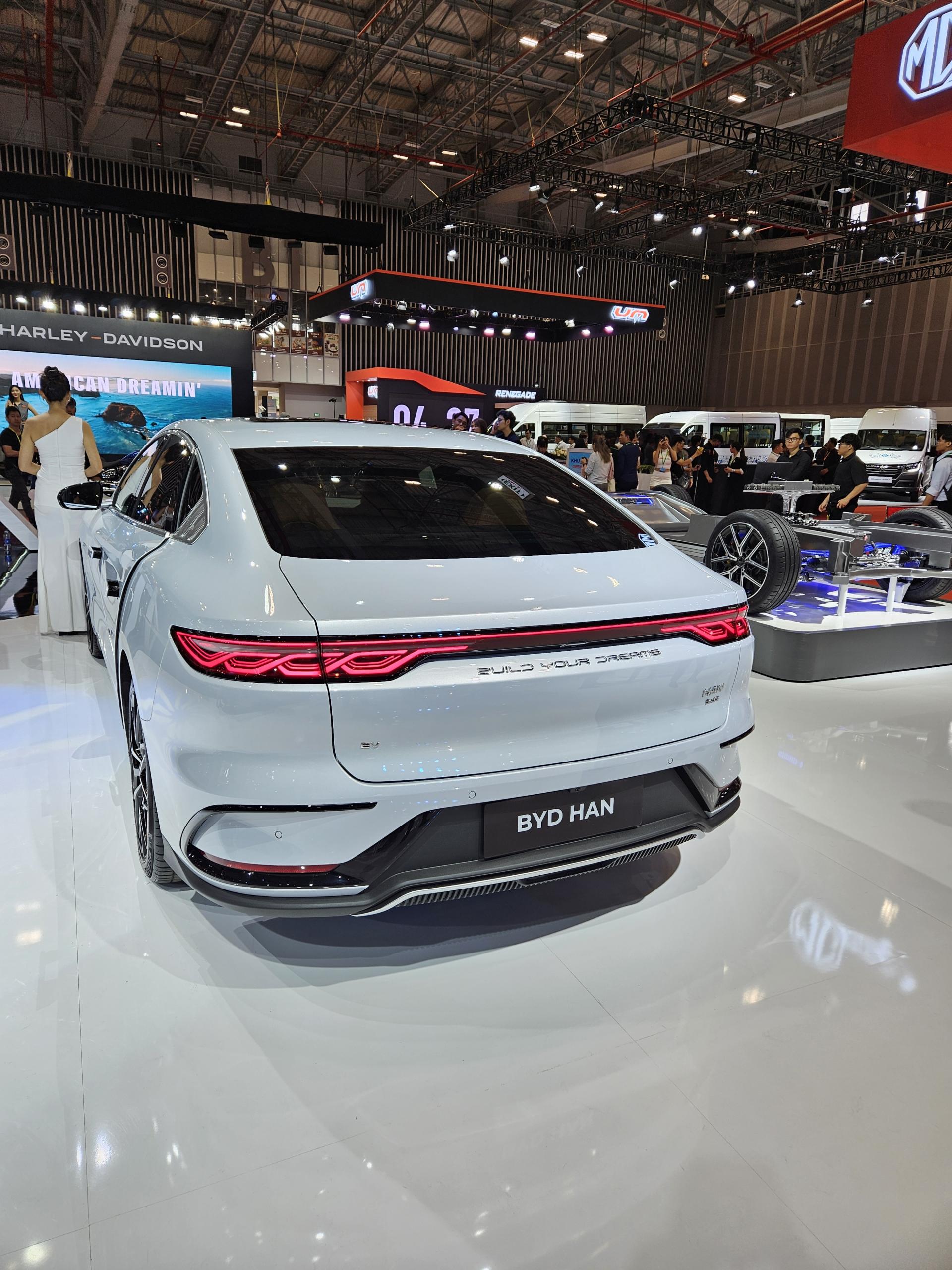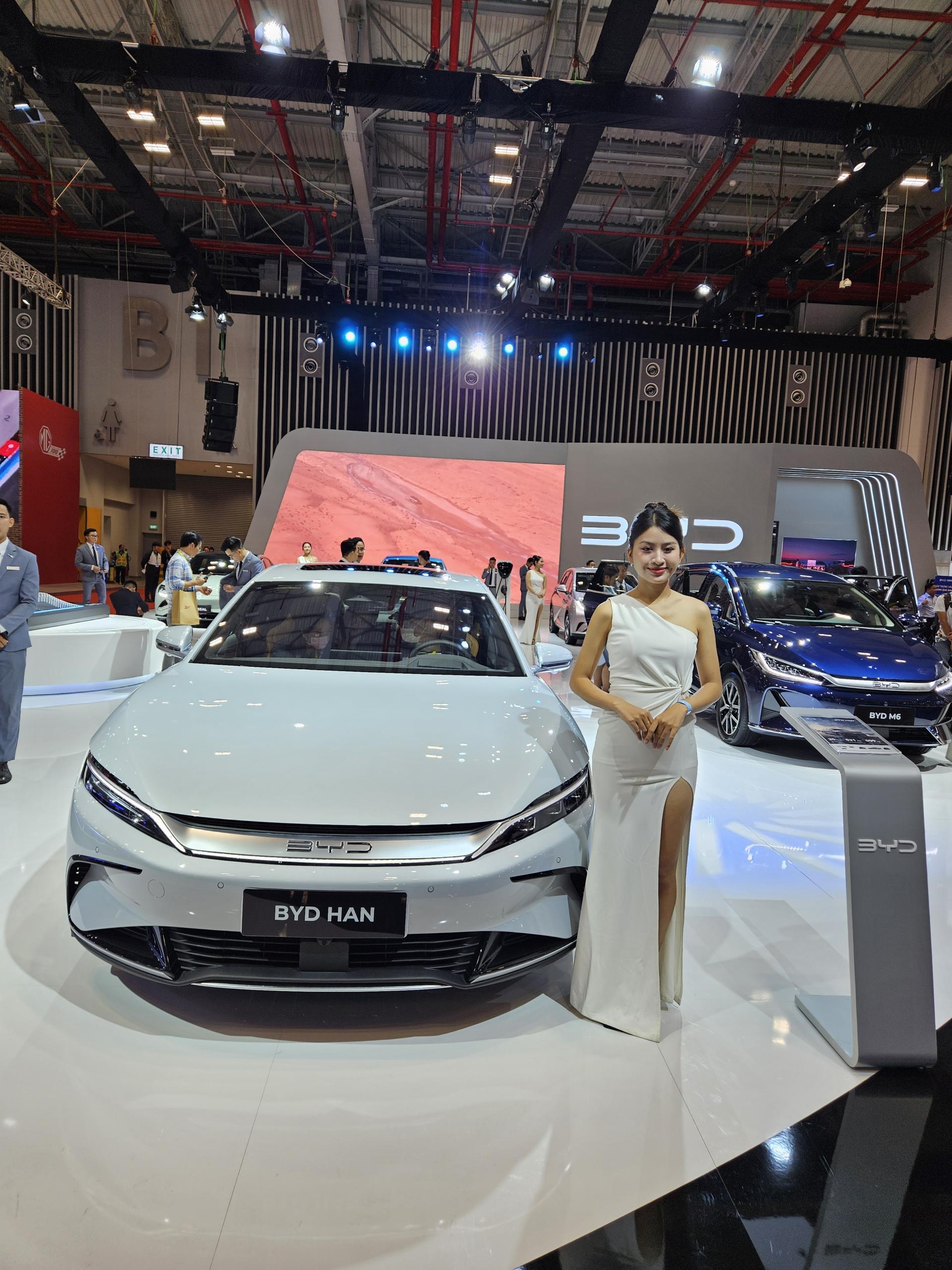 Bộ đôi sản phẩm vừa ra mắt thị trường Việt Nam BYD M6 và BYD HAN cũng gây chú ý khi xuất hiện tại VMS 2024. BYD M6 là mẫu MPV gia đình với không gian rộng rãi, tiện nghi cao cấp, nhiều tính năng an toàn và tiết kiệm chi phí sử dụng, lý tưởng cho nhu cầu di chuyển hàng ngày và kinh doanh dịch vụ. Trong khi đó mẫu sedan BYD HAN nổi bật với thiết kế khí động học và công nghệ điện tiên tiến. BYD HAN cung cấp khả năng tăng tốc mạnh mẽ, nội thất tinh tế và loạt công nghệ hỗ trợ lái thông minh, đáp ứng nhu cầu của những người yêu thích tốc độ và sự sang trọng.