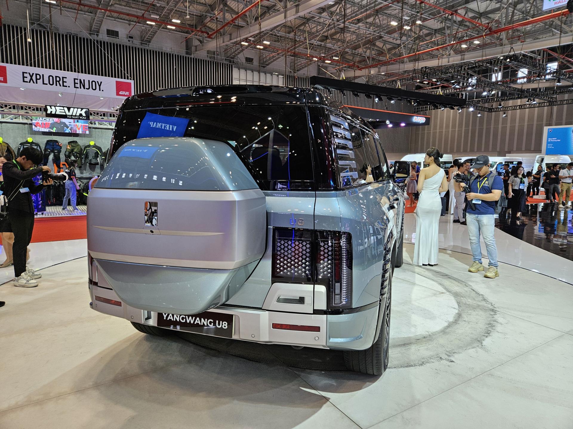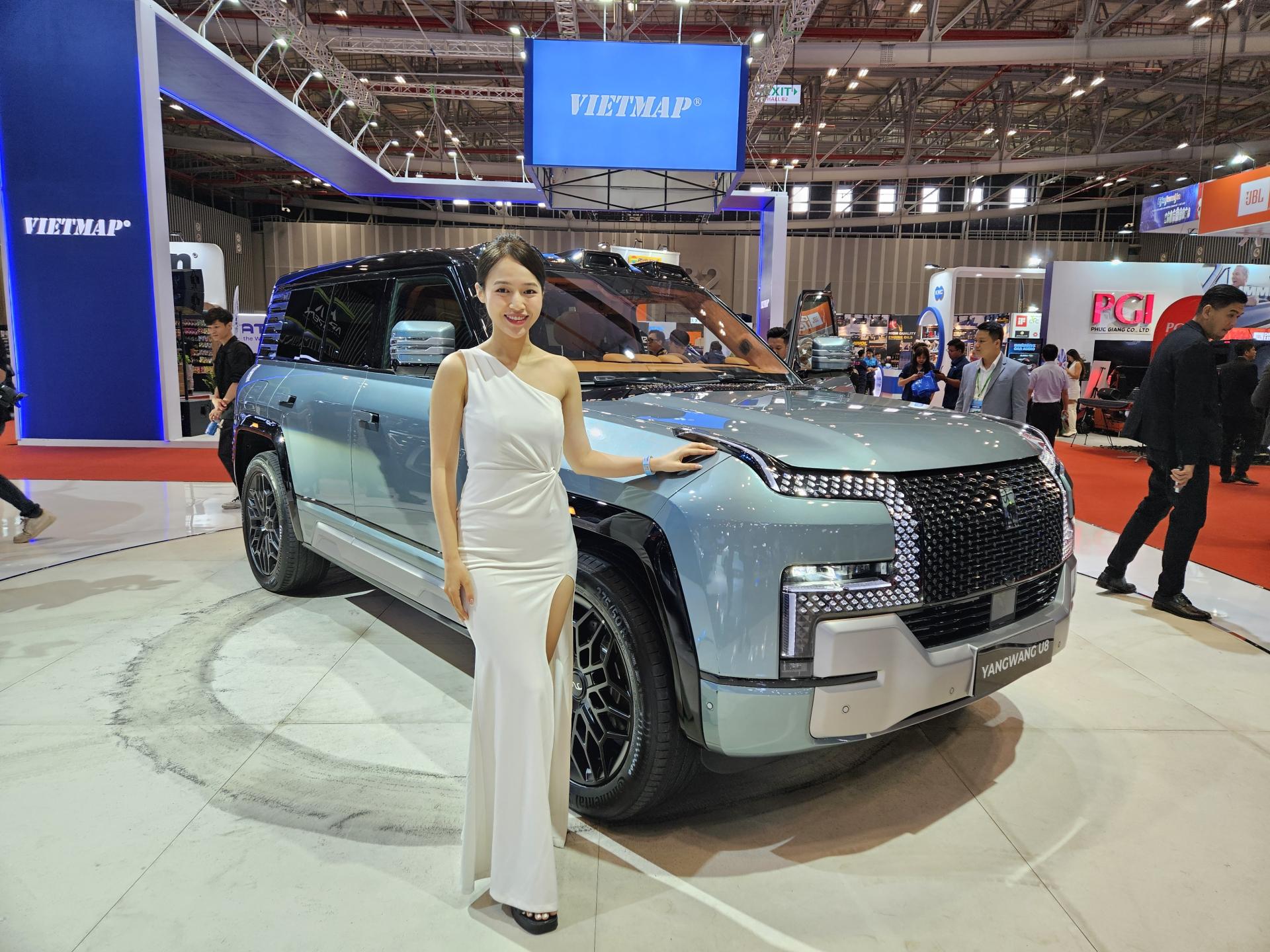 Tại VMS 2024, BYD đã dành một vị trí đắc địa ngay trung tâm gian hàng để trình diễn mẫu xe SUV đầu bảng YANGWANG U8. Với thiết kế mạnh mẽ, cứng cáp nhưng không kém phần sang trọng, YANGWANG U8 mang trong mình thông điệp về sự đột phá cả về công nghệ lẫn khả năng chinh phục mọi địa hình. Tại khu vực trình diễn, khách tham quan có cơ hội tận mắt chứng kiến tính năng xoay tại chỗ 360 độ ấn tượng.
